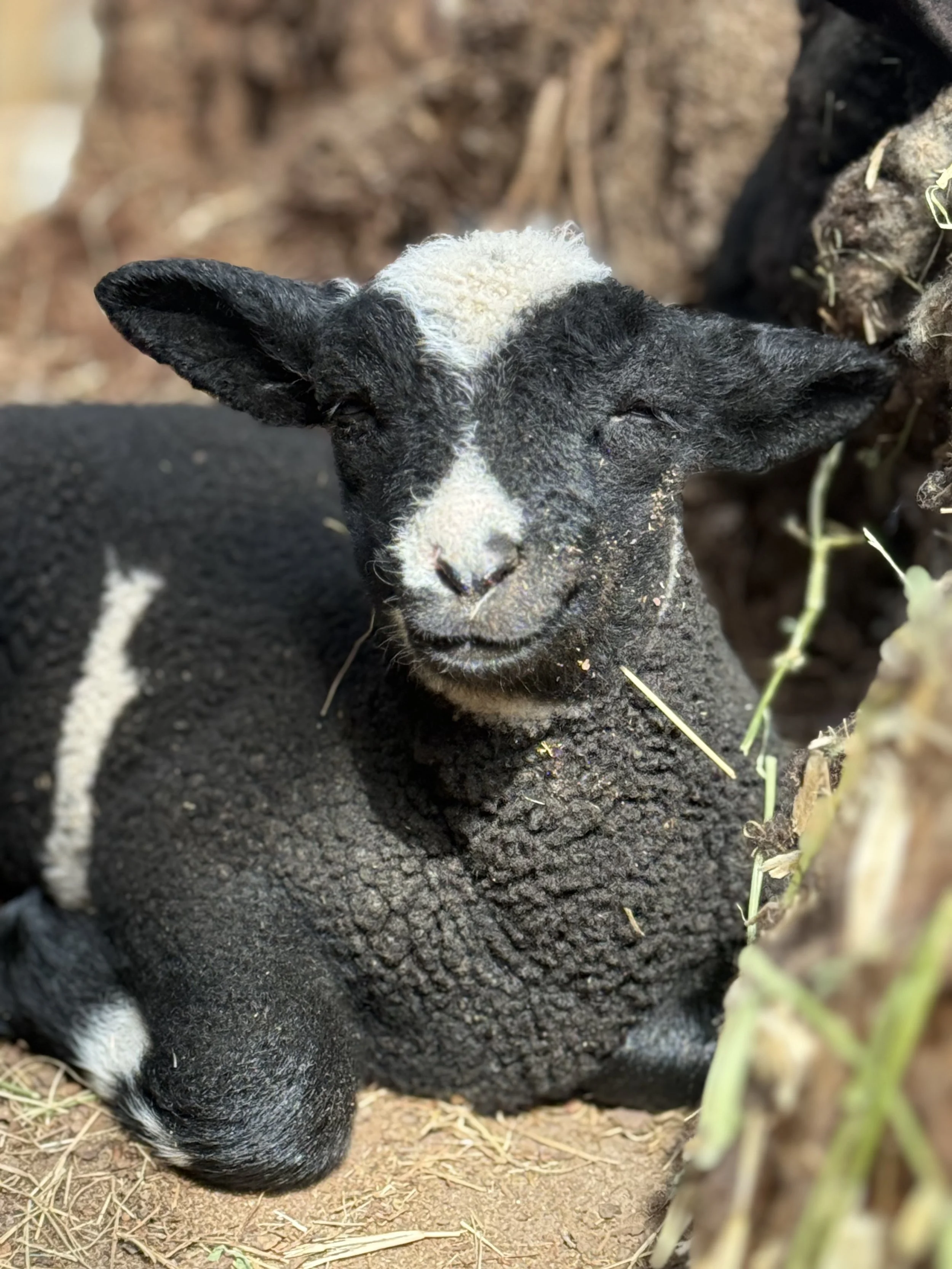 “Peanut”, AP Generation Ram Lamb, Born March 14, 2026, Twin: This beautiful little boy is the jester of our flock this year. Beautifully spotted with partial blue eyes, he is playful with his twin sister and with the other lambs. He’s very inquisitive about what’s going on in the barnyard. Mom “Bean” is our sweetest breeding ewe and he seem to have the same gentle disposition.